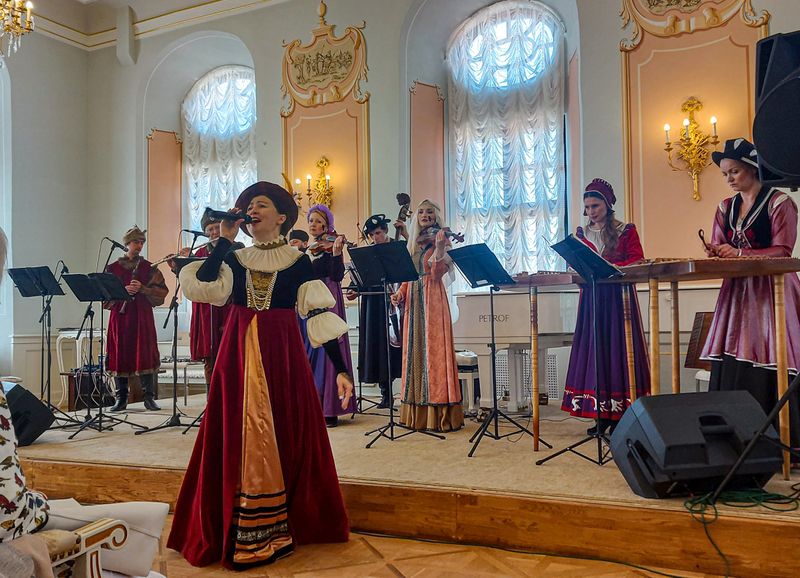 Аркестровая група Беларускага дзяржаўнага акадэмічнага ансамбля «Харошкі» прадставіла ўнікальны камерны праект, які створаны па матывах «Полацкага сшытка». У аснову пакладзены нотныя запісы беларускай свецкай музыкі эпохі Адраджэння. Шматколерныя мелодыі ў віртуозным выкананні, бліскучы вакал, дзівосныя сцэнічныя касцюмы разам з раскошнай залай палаца — усё гэта стварыла непаўторную атмасферу далёкай таямнічай эпохі беларускага Барока. Цэнтральнае месца музычнай праграмы занялі такія інструменты, як дыятанічныя цымбалы, ражкі, басэтля — і вось мы ўяўляем, як менестрэлі, пілігрымы, шляхта збіраюцца на плошчы сярэднявечнага горада.