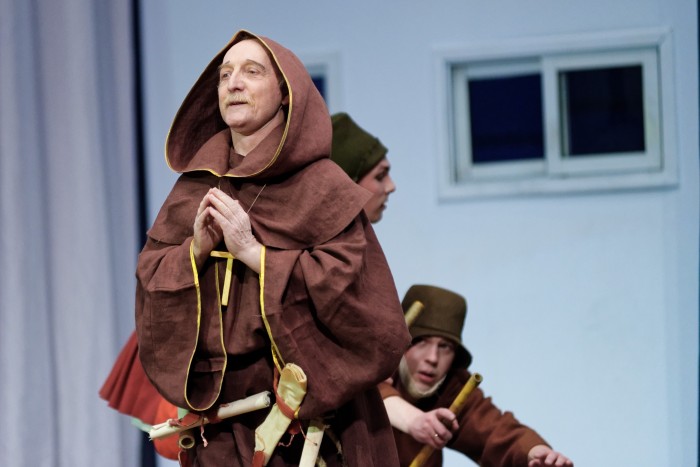 Гучанне старадаўніх музычных інструментаў: ліры, жалейкі, дуды, цытры — напаўняе атмасферу спектакля дыханнем далёкай эпохі.